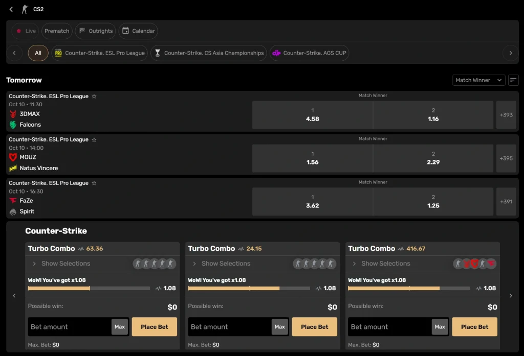 - eSports: Betting on eSports is a serious game now, and we offer markets on top titles like CS:GO, Dota2, and many more.